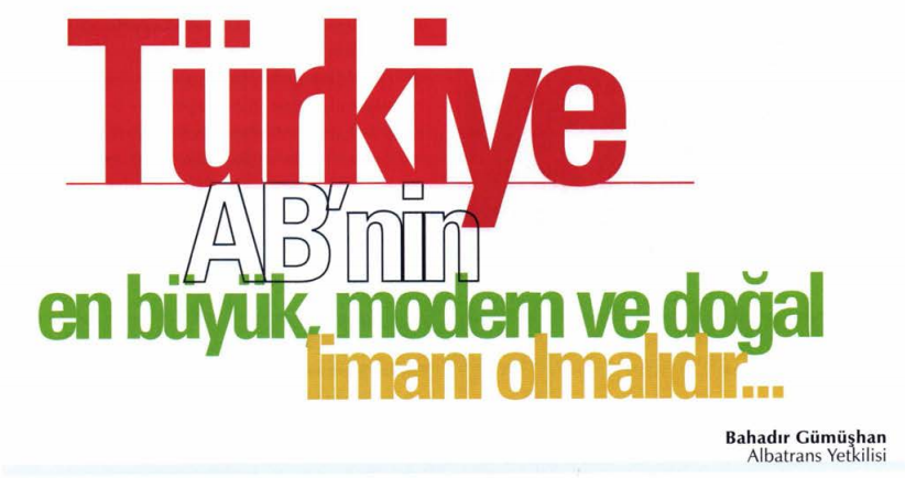 Türkiye Avrupa Birliği’nin en büyük, en modern ve doğal limanı olmalıdır. Türkiye’nin bir noktası, örneğin Marmara iç denizi doğal bir liman olarak rezerve edilebilir. Üretimini uzakdoğuya kaydıran tüm sanayileşen ülkeler hava-kara deniz yolları ile bu limana ulaştırdıkları ticari mallarını kolaylıkla yine kara – hava – deniz ve ek olarak tren yolu taşıması ile Avrupa ülkelerine ve gelişen Rusya’ya dağıtabilir ve iletebilirler.