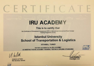 IRU bünyesinde yer alan IRU Academy, lojistik ve ulaştırma sektöründe çalışacak olan yetkin işgücünün geliştirilmesi amacıyla eğitim faaliyetleri organize ediyor ve eğitimin ardından Mesleki Yeterlilik Diploması veriyor. IRU’nun akredite ettiği okul ve kurumlar, gerekli akreditasyon kriterlerini sağlayarak bu diplomayı vermeye hak kazanıyorlar. İstanbul Üniversitesi Ulaştırma ve Lojistik Fakültesi vizyon ve misyonu ile örtüşen Profesyonel Yönetici Yetkinlik Sertifika (CPC, Certificate of Professional Competence) programına akredite olmuştur.
