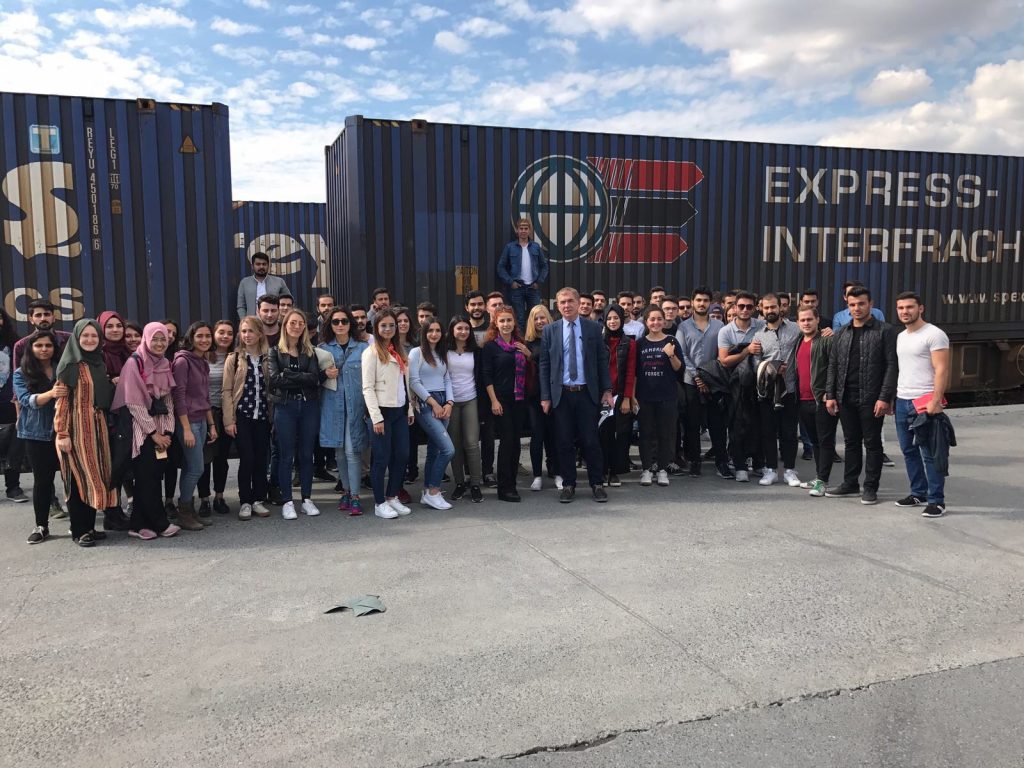Gezimiz boyunca konteyner türleri, konteynerların üzerinde belirtilen harflerin ve rakamların ne anlama geldiği, elleçleme sırasında kullanılan araçları ve işlevlrini, operasyonun aşamaları, depolarda ürünlerin bekletilme koşullarını TCDD Halkalı Lojistik Merkezi Müdürü Hasan Yetim’in detaylı anlatımı ile öğrenmiş olduk.