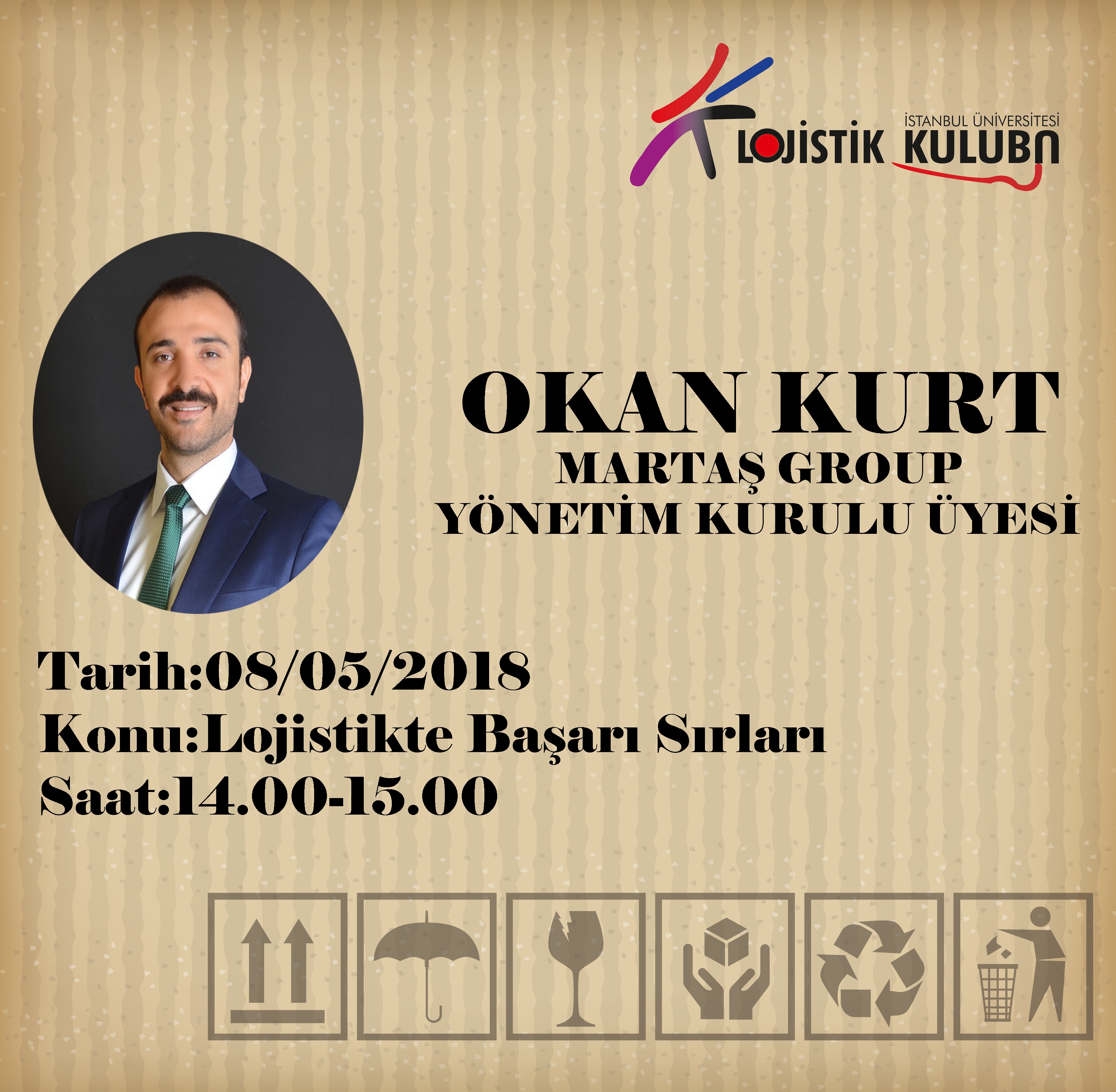 Yaşanan aksilikten dolayı 15.Lojistik Zirvemize katılım sağlayamayan Okan Kurt , “Lojistikte Başarı Sırları” konu başlığıyla 08.05.2017 tarihinde saat 14.00-15.00 arasında ILab etkinliği kapsamında okulumuzda olacak.