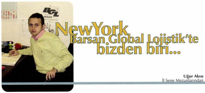 Okul bitti ve sonra birden sanki uçurum kenarına gelmiş gibi olduk inanmak güçtü ama koca 5 sene bitmişti artık. Bir şeyler yapma zamanıydı mezuniyetten bir hafta sonra; daha önce öğrenci olduğum dönemde bir süre Almanya ofislerinde de çalışma fırsatı bulduğum Barsan Global Lojistik’te işe başladım. 8 ay kadar Türkiye’deki bütün ofislerimizde çalıştım. Bu eğitimin ardından benden Barsan New York ofisinde çalışmam istendi ve 1 senedir NewYork’dayım. Bir çok şey öğrendim ve öğrenmeye de devam ediyorum. Aynı zamanda NYU (New York Univercity) da Marketing & Sales üzerine dersler alıyorum.