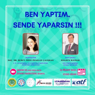 İstanbul Üniversitesi Lojistik Kulübü olarak “UZMANINDAN” serisinde bu haftaki konuğumuz “BEN YAPTIM. SENDE YAPARSIN !!!” konu başlığı altında ATF FORWARDING Genel Müdür’ü Sn. Haldun KAVRAR olacaktır. Moderatörlüğünü Fakültemiz Öğretim Görevlisi DOÇ. DR. Burcu Özge ÖZASLAN ÇALIŞKAN üstleneceği etkinliğimiz eş zamanlı … Devamı