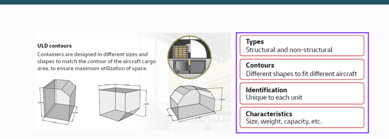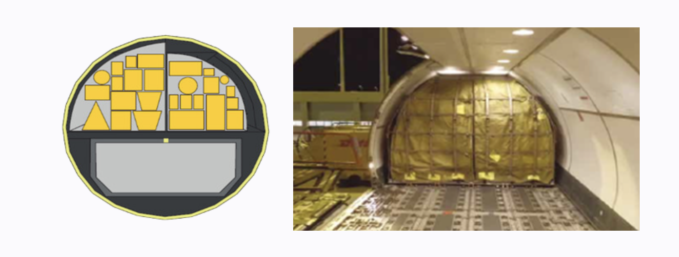 Uçakların iç gövde yapılarına uyacak şekilde tasarlanmış, alüminyum, karbon fiber gibi hafif malzemelerden üretilmiş, esnek ancak dayanıklı konteyner ya da paletler de diyebiliriz.